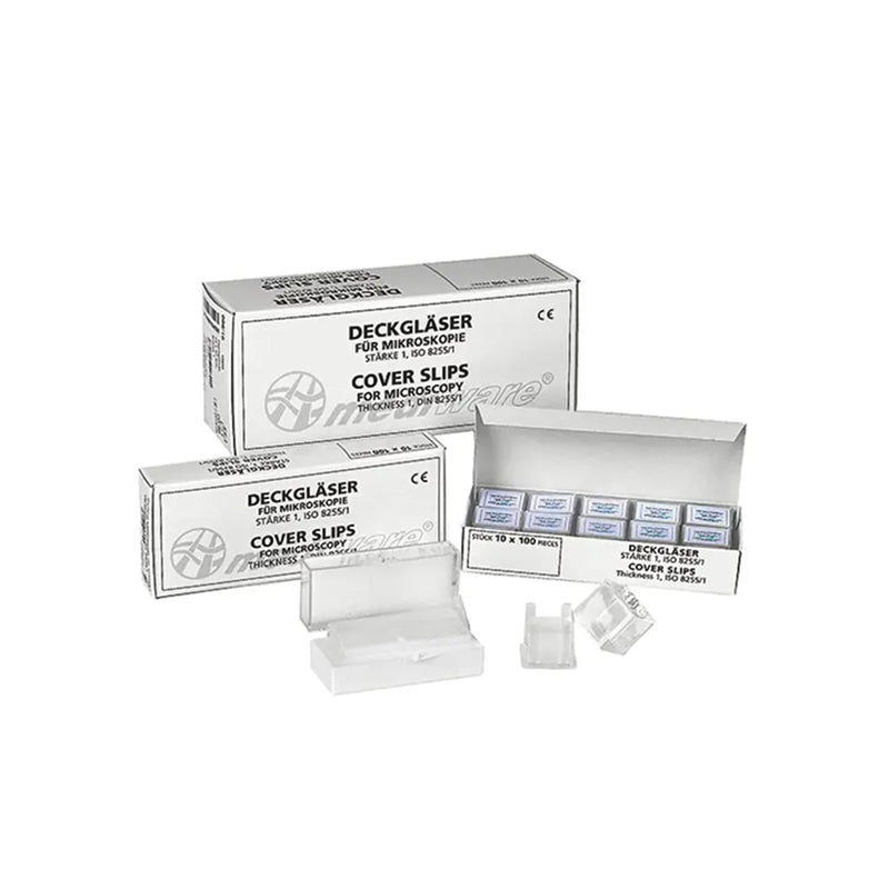 Mediware Deckgläser – Stärke I, ungeeicht, deutsche Qualitätsware. Perfekt zur Abdeckung von Präparaten auf Objektträgern für mikroskopische Analysen. Standardgröße 18 × 18 mm (weitere Formate auf Anfrage verfügbar).