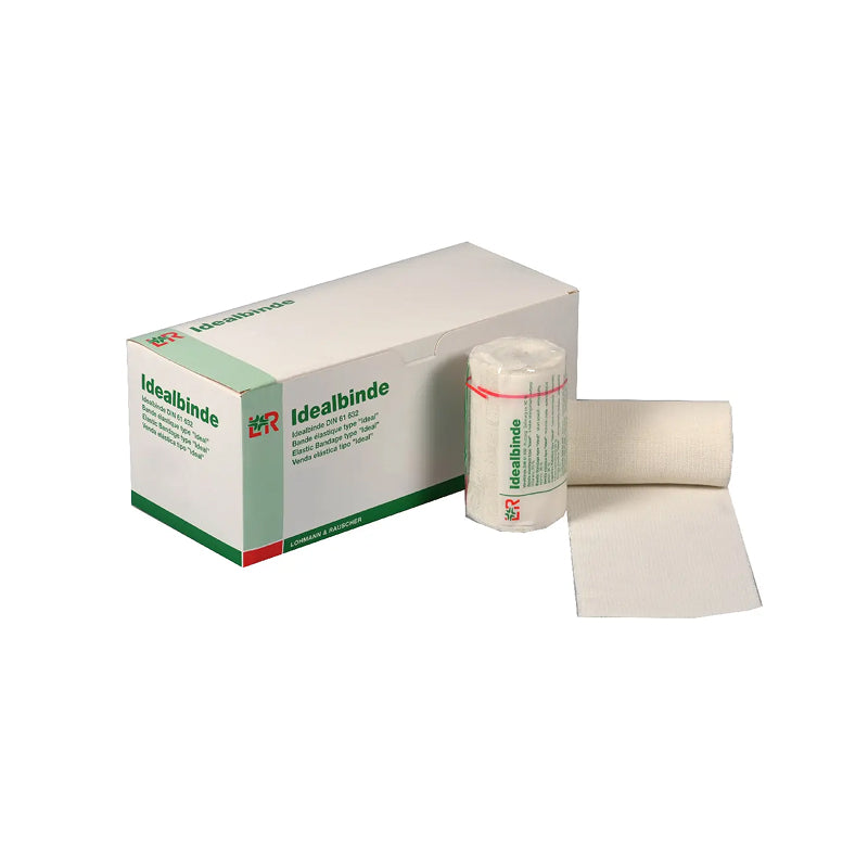 Die L&R Idealbinde (DIN 61632) 20 cm × 5 m lose im Karton – 10 Stück: textilelastische Kurzzugbinde aus 100 % Baumwolle, hautsympathisch und luftdurchlässig. Schlingkante, griffiges Gewebe für sicheren Halt. Ideal zur kräftigen Kompression in Phlebologie & Lymphologie, Stützen, Sport- oder Thromboseverbänden.