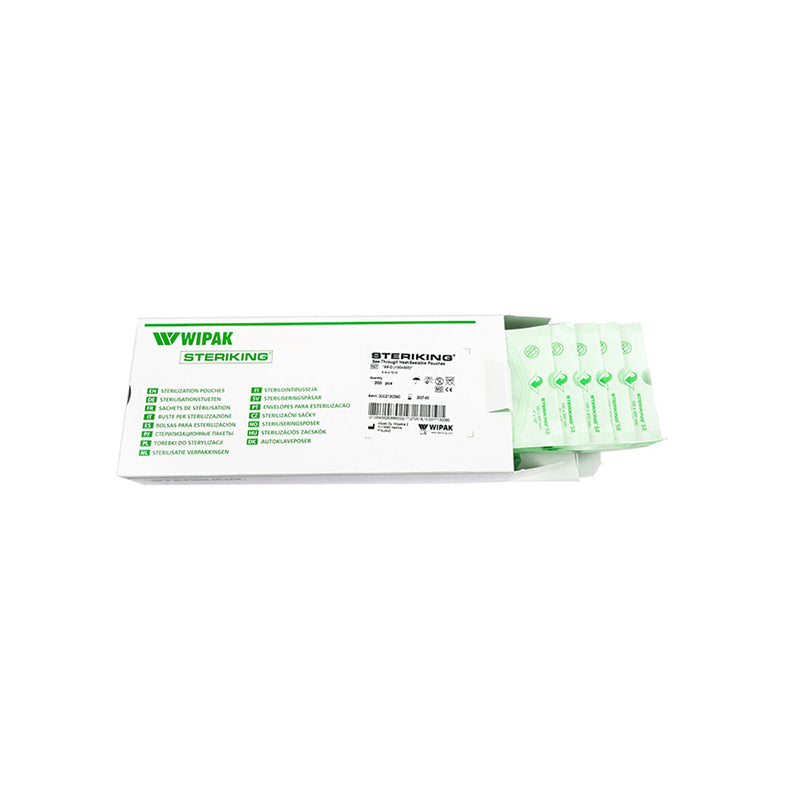 Steriking Klarsicht-Sterilisierbeutel Typ S – flach, aus medizinischem Papier & 9-lagiger Folie. Für Dampf-, EO- & FO-Sterilisation geeignet. Mit Prozessindikator, hoher Siegelnahtfestigkeit & klarer Sichtkontrolle. Sicher, steril & in vielen Größen erhältlich.